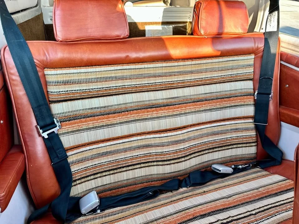 -Materials, original upholstery, leather, and fabric with minimal wear on seats, side panels, and headliner.